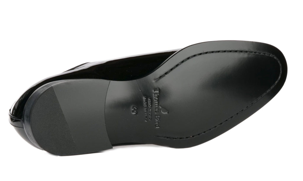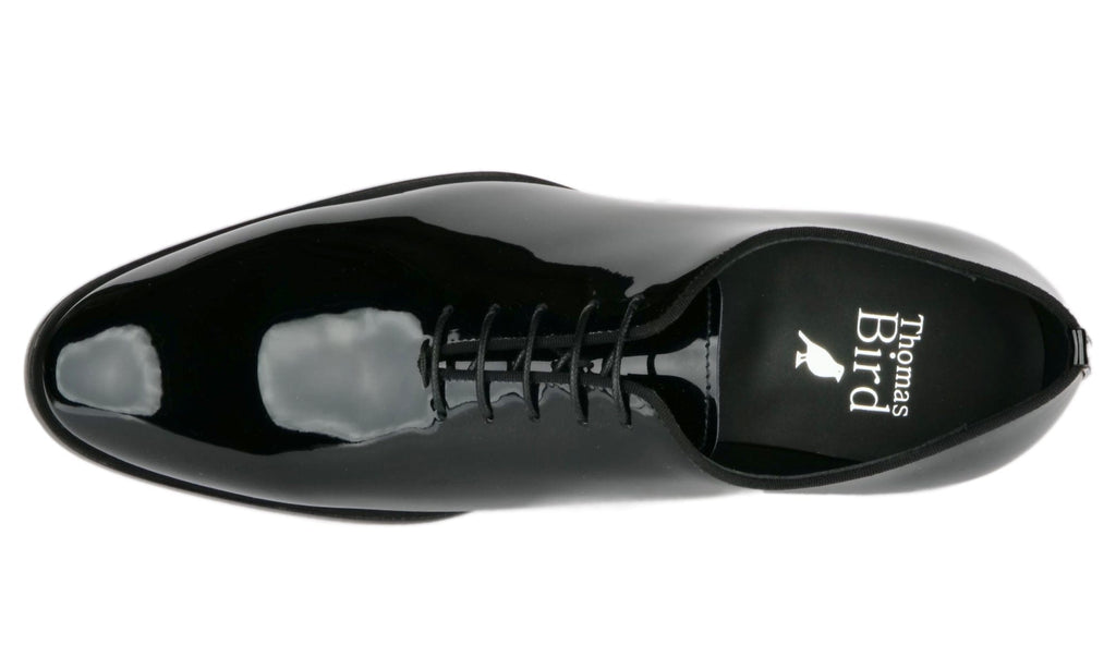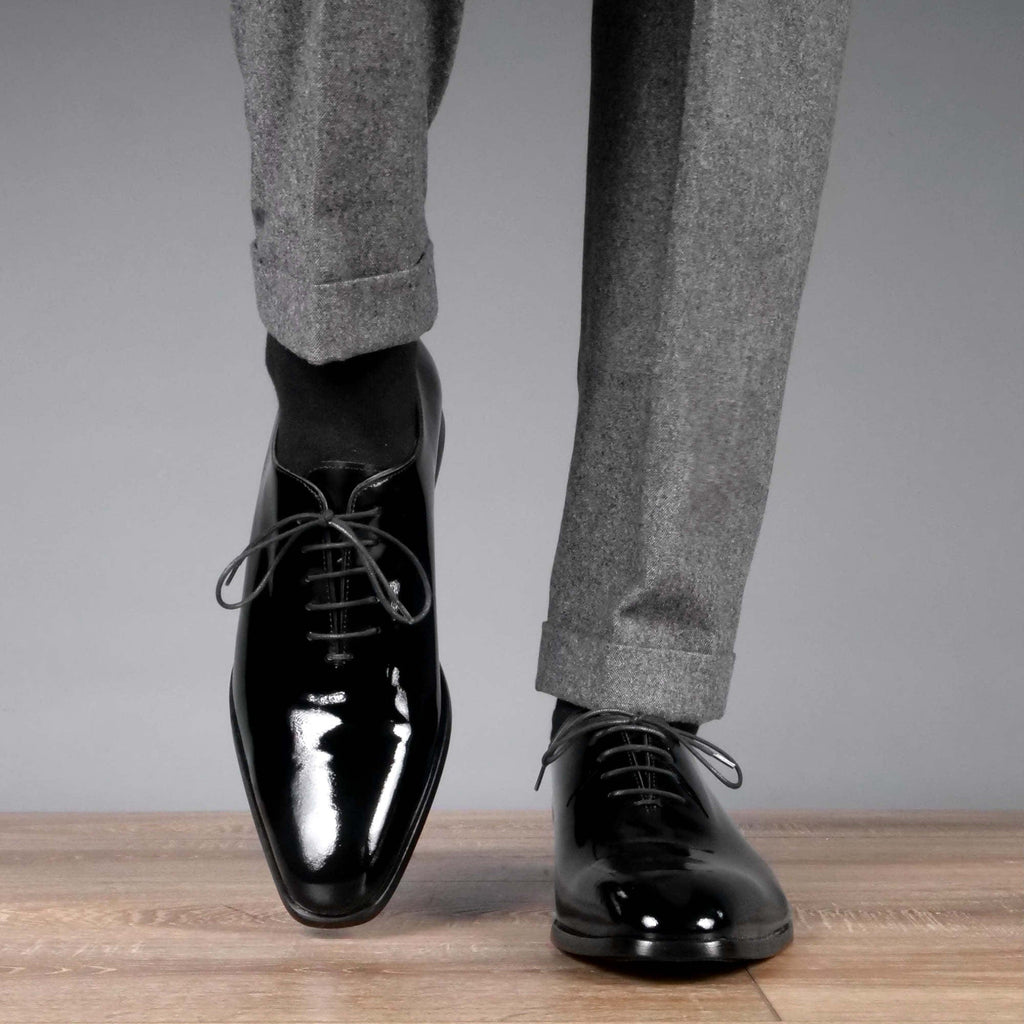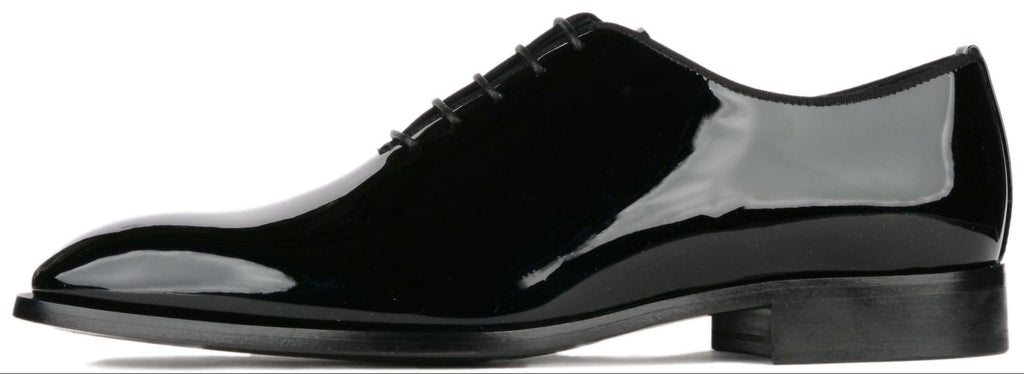 Patent leather black wholecut evening shoes, made in Italy.