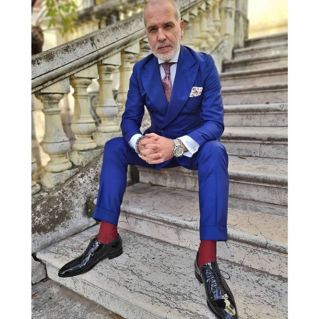 Photo: @thesuitedtraveller wearing them with a black pinstripe suit.