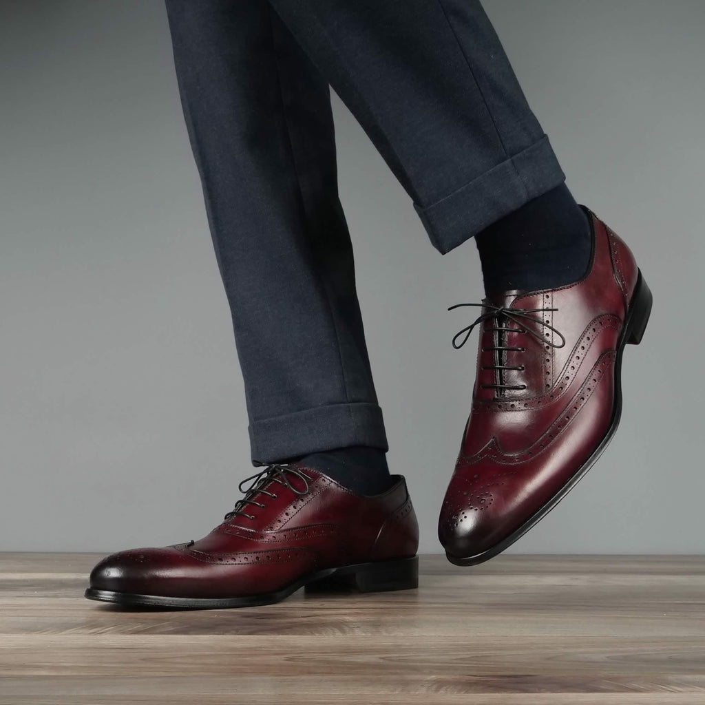 Cambridge is a classic wingtip brogue Oxford with elegant lines and a rounded toe. With a deep, rich oxblood finish this Cambridge shoe can be worn as a formal option or dressed down for a smart casual look with blue tones or neutral outfits.