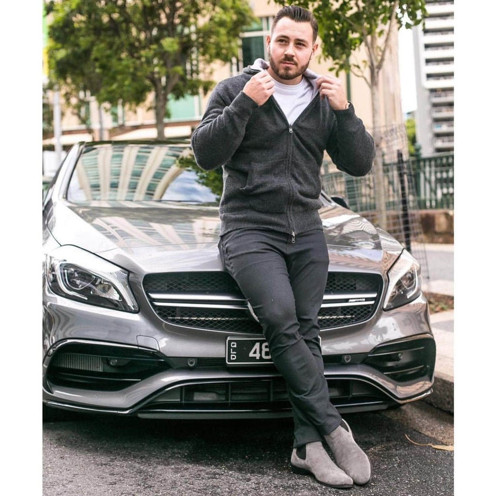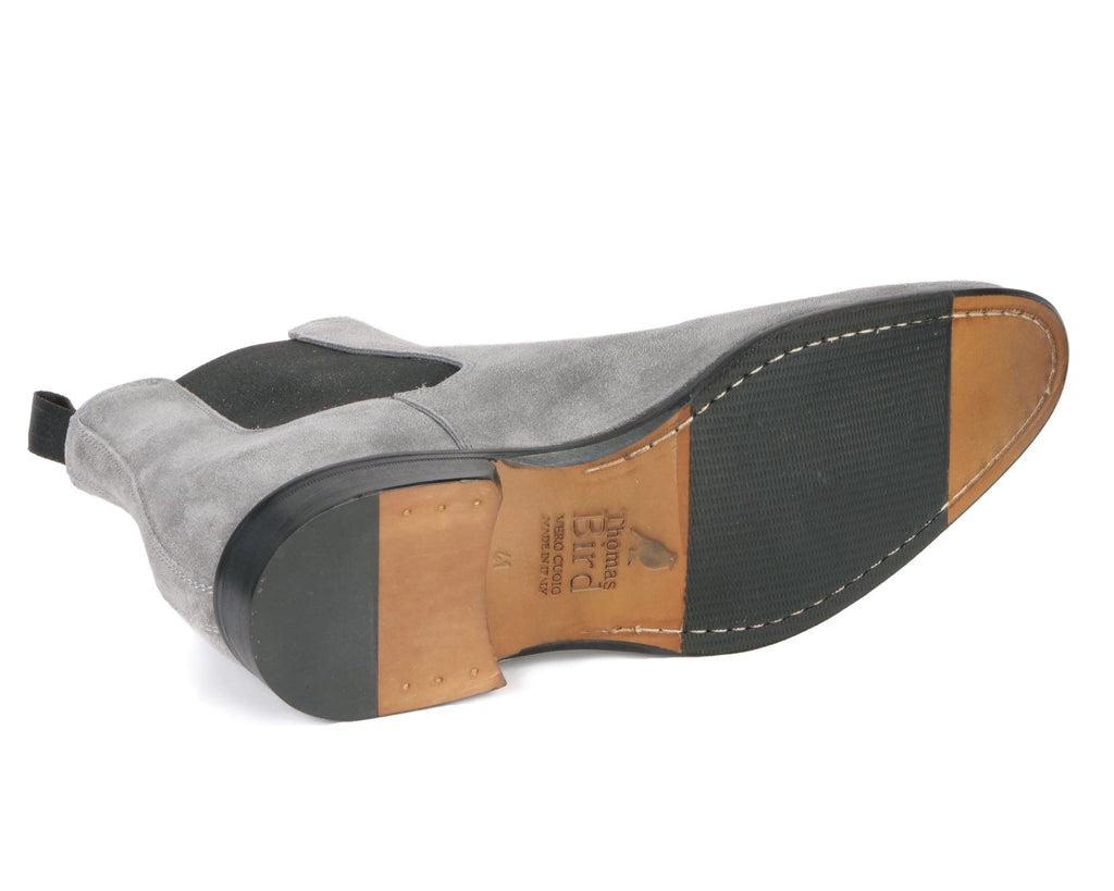 • High-quality hand-dyed grey calf suede for softness and longevity