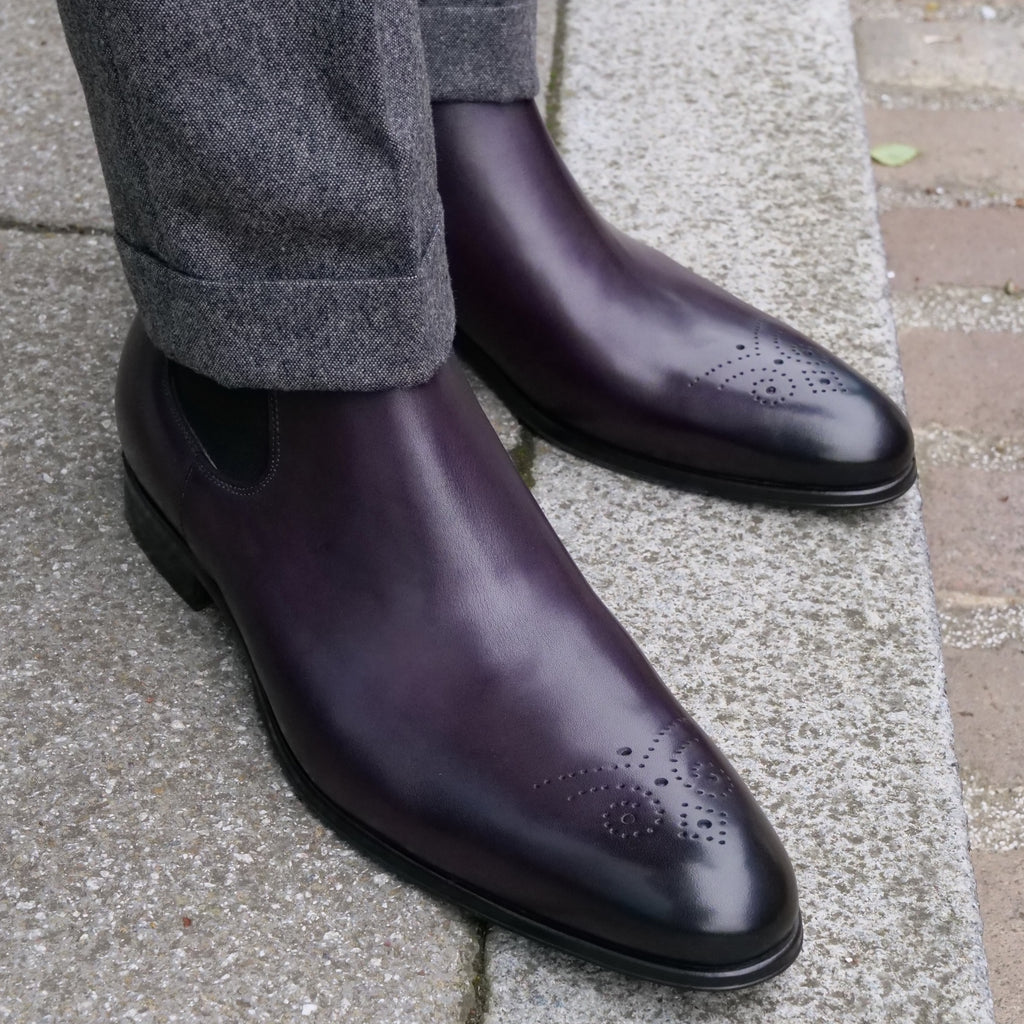 Stirling has the same design and look as our popular Eastwood chelsea boot, with the addition of brogue detailing on the toe. Comfortable, versatile and relaxed it can be worn casually or suited up. This unique aubergine finish adds individuality and interest to any outfit.