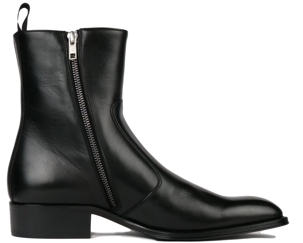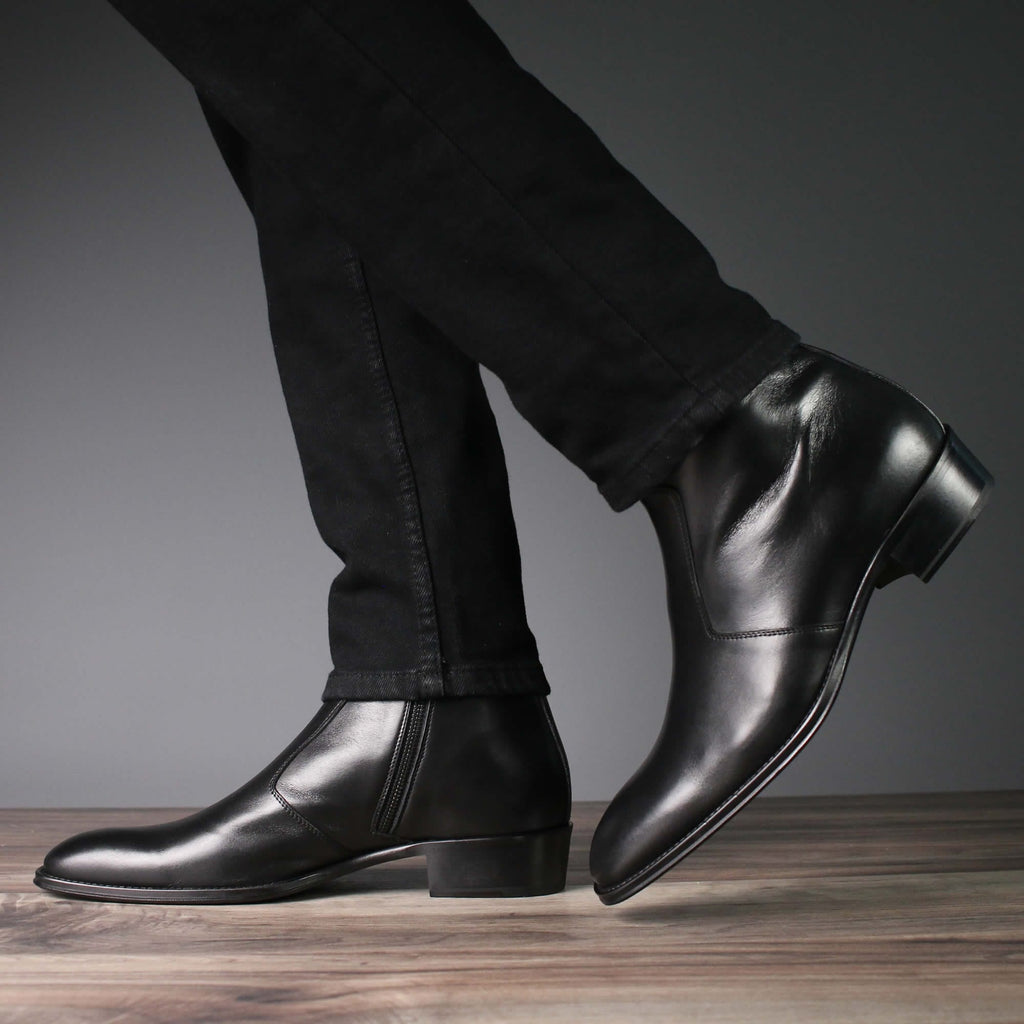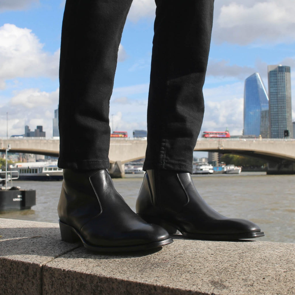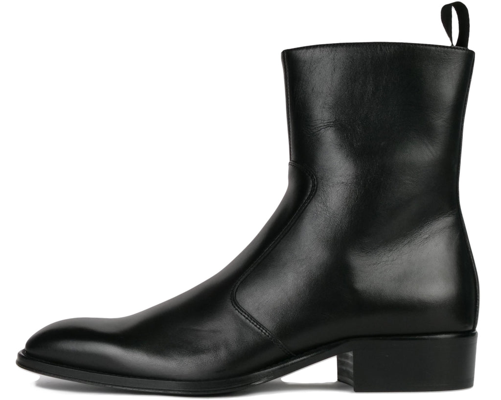 Phoenix is a beautiful Italian-crafted zip boot with style and attitude. Similar to our Memphis boot, Phoenix is a little wider with a slightly wider toe. It has a 40mm stacked heel and striking silhouette. Comfortable and versatile it can be worn casually with jeans or suited up. In premium black full grain leather, this is a sleek, unique boot that will enhance any outfit.