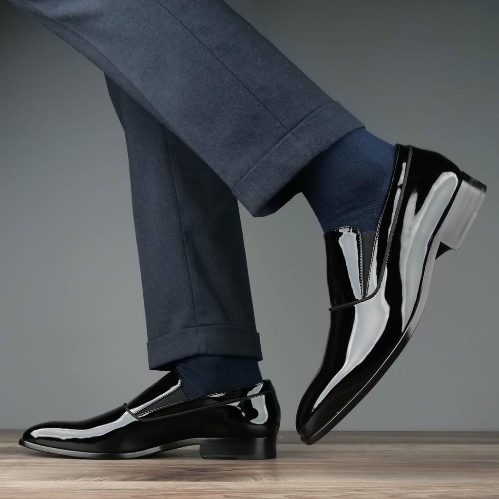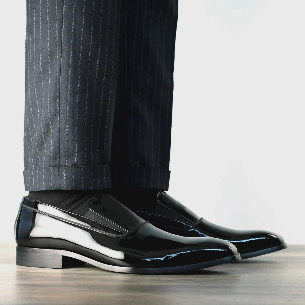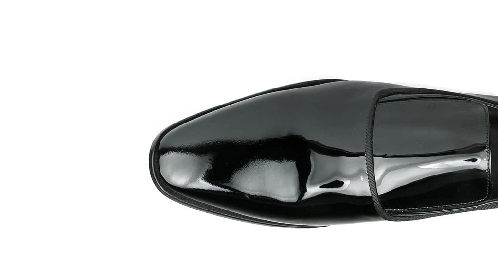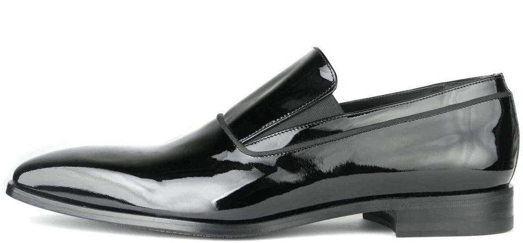 Patent leather black step in loafer evening shoes, made in Italy.
