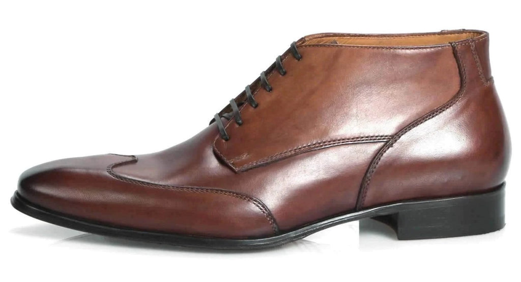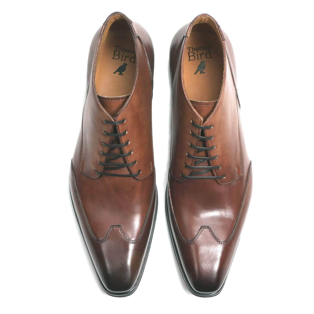 Newton updates the classic chukka with a more angular silhouette, more eyelets and a burnished wingcap. They can be worn with smart clothes or casual. Tan is so versatile and goes with most outfits.The stitched leather sole includes a rubber insert to add grip and makes them last much longer before needing resoling.