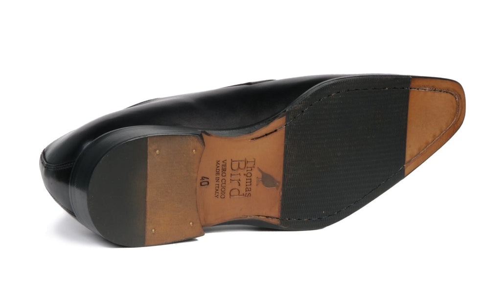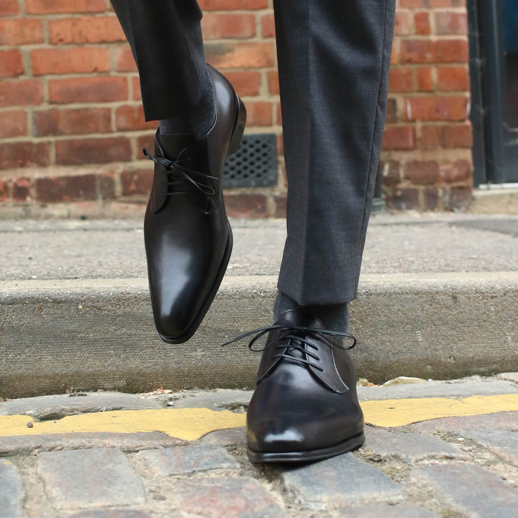 Buckingham is a stylish blucher based on the same last as our Benson wholecut. It has the open lacings of a derby but without the derby seam, and creates that clean, uninterrupted wholecut look. In classic black leather, this smart shoe is comfortable and versatile and complements any suit beautifully.