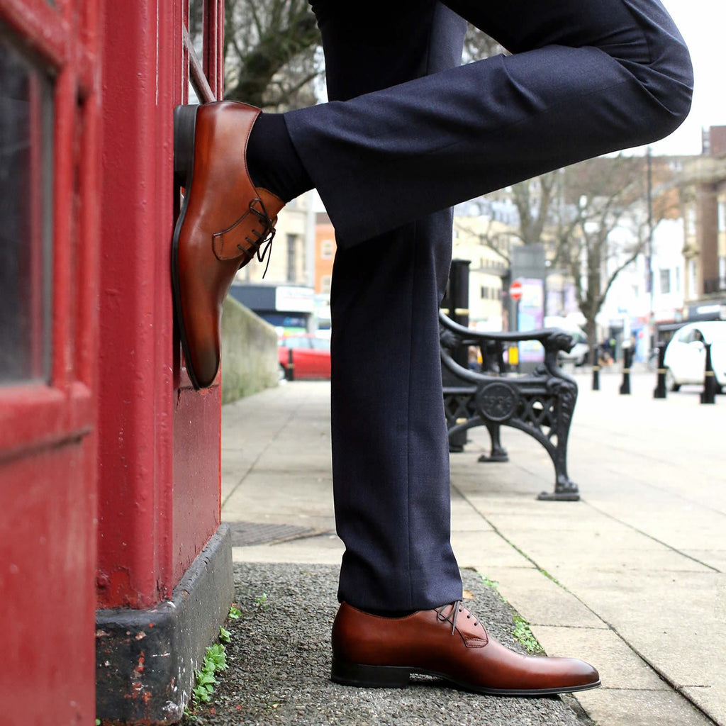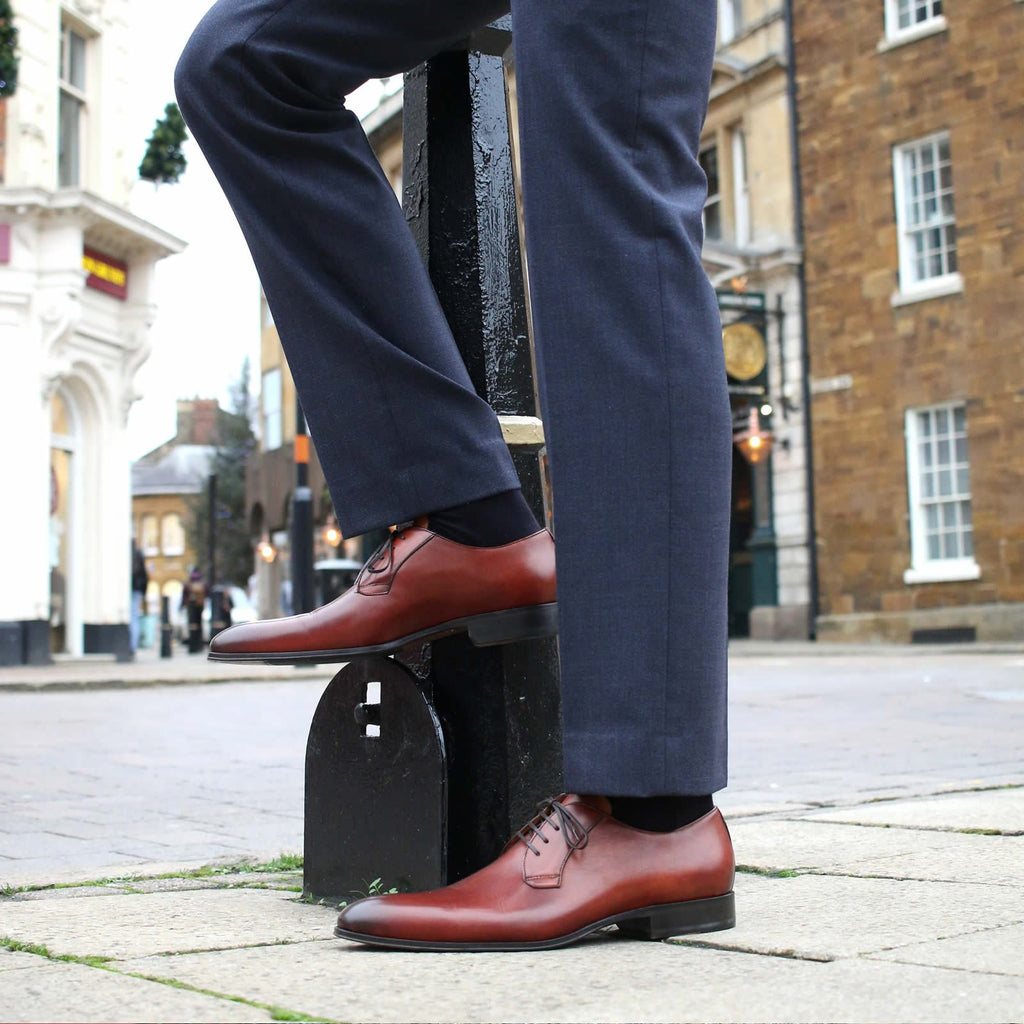 Buckingham is a stylish blucher based on the same last as our Benson wholecut. It has the open lacings of a derby but without the derby seam, and creates that clean, uninterrupted wholecut look. In a beautiful rich chestnut, this shoe will add colour and warmth to any outfit.