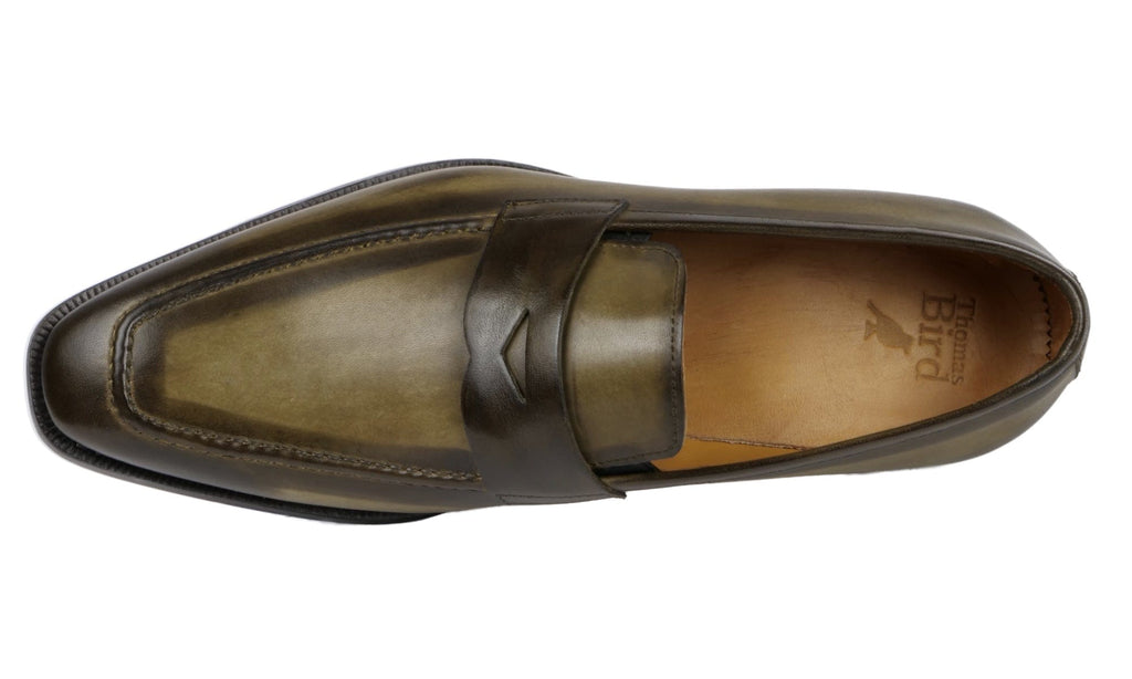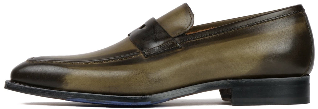 Hampton is a fresh re-design of the traditional penny loafer. Sleek, elegant lines and a chiselled toe are inspired by European/Italian styling. Olive green is a beautiful, unique tone adding interest and subtle colouring to your outfit.