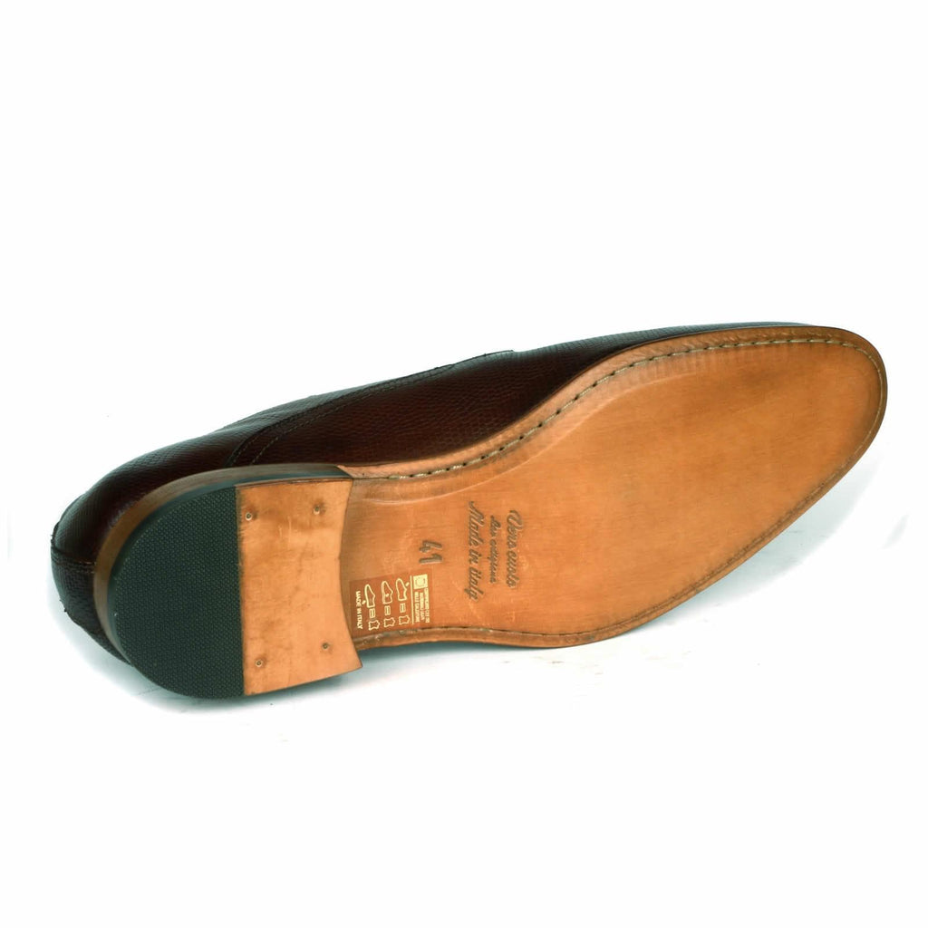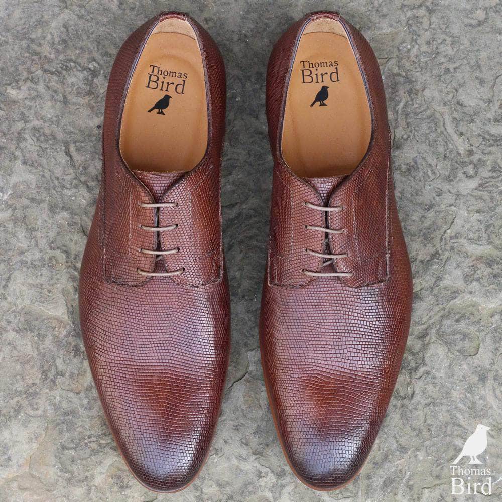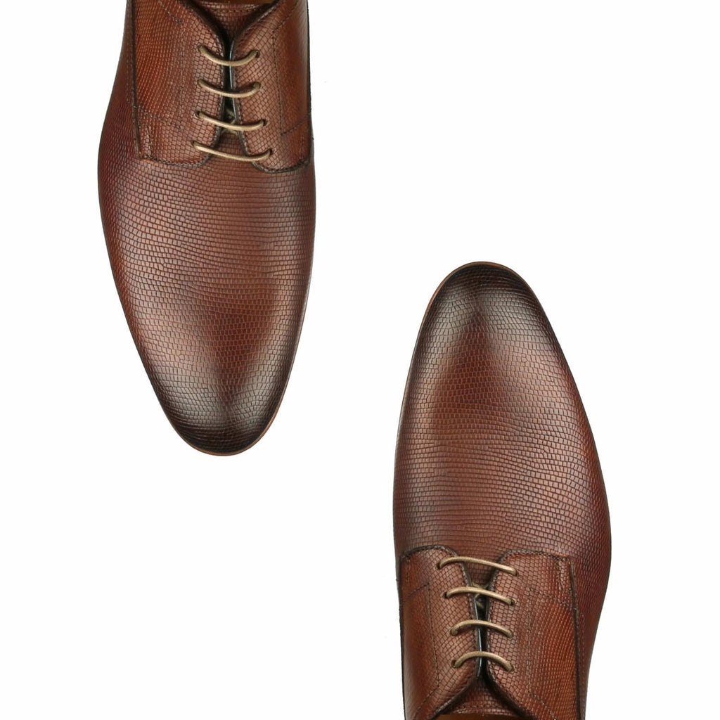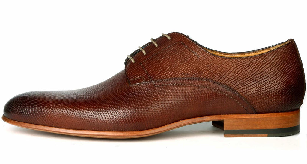 Distinctive Italian made, snakeskin effect derby with full leather sole. Marlow stands out with its snakeskin effect calf leather, achieved with a special embossing process. This distinctive shoe is perfect for relaxed and smart special occasions. Hand burnished tan brown calf goes with most outfits.