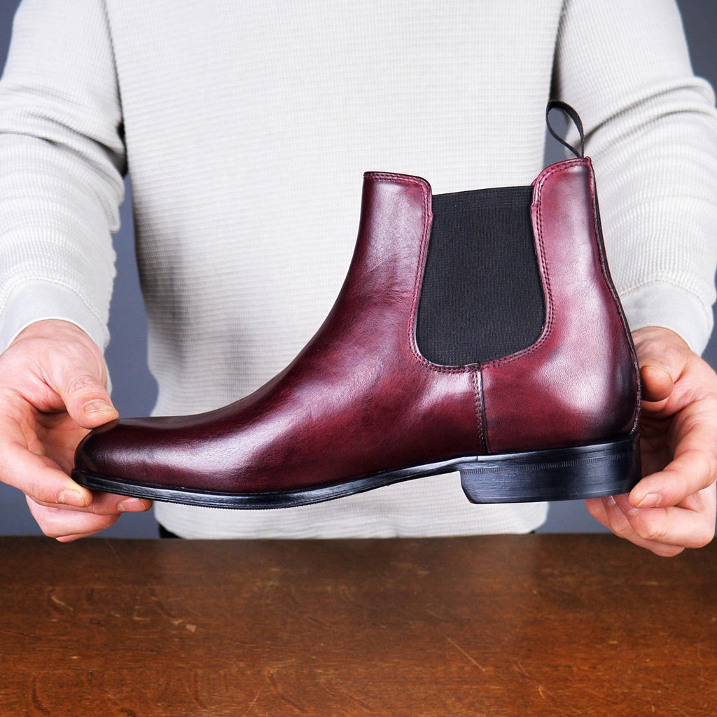 Milan is a fresh look at the classic chelsea boot. It is cut slightly lower on the ankle, with more angular lines and a semi-chiselled toe. Stylish and versatile it can be worn casually or dressed up for more formal occasions. In a beautiful oxblood, this boot will add warmth and individuality to any outfit.