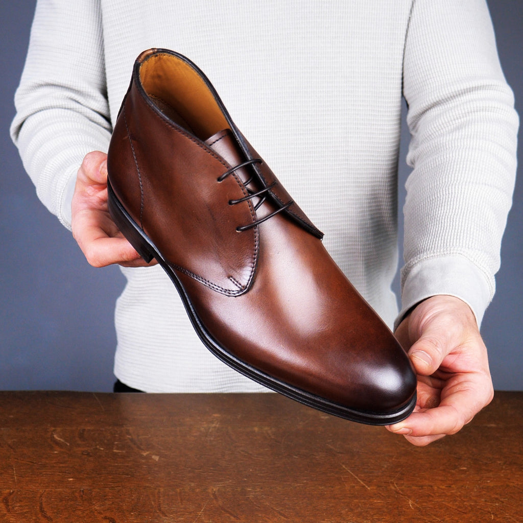 Hamilton updates the classic chukka boot with beautiful sweeping lines and a modern, clean look. Comfortable, versatile and relaxed it can be worn casually or suited up. In this lovely rich tan, the Hamilton will add warmth to every outfit.