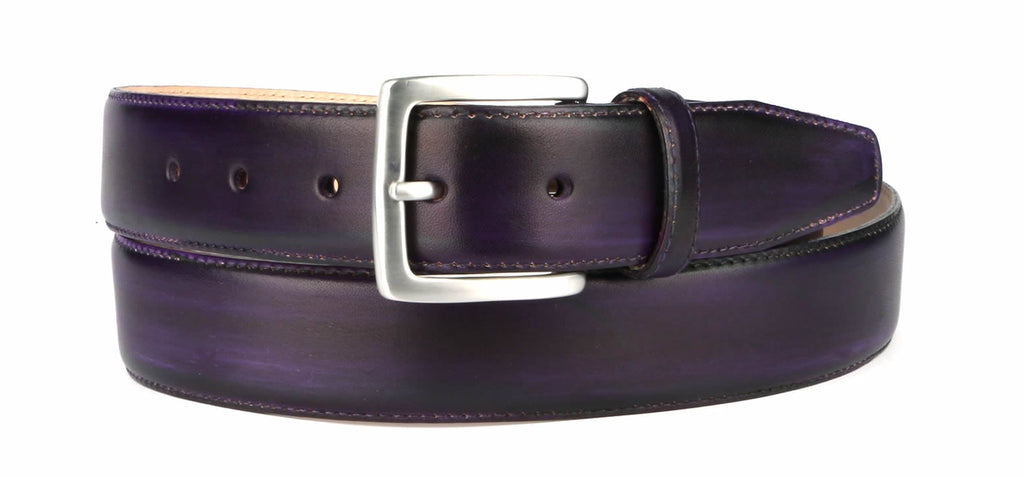 High quality aubergine/eggplant leather belt made from full grain Italian leather, dyed and hand finished to create a rich colour.