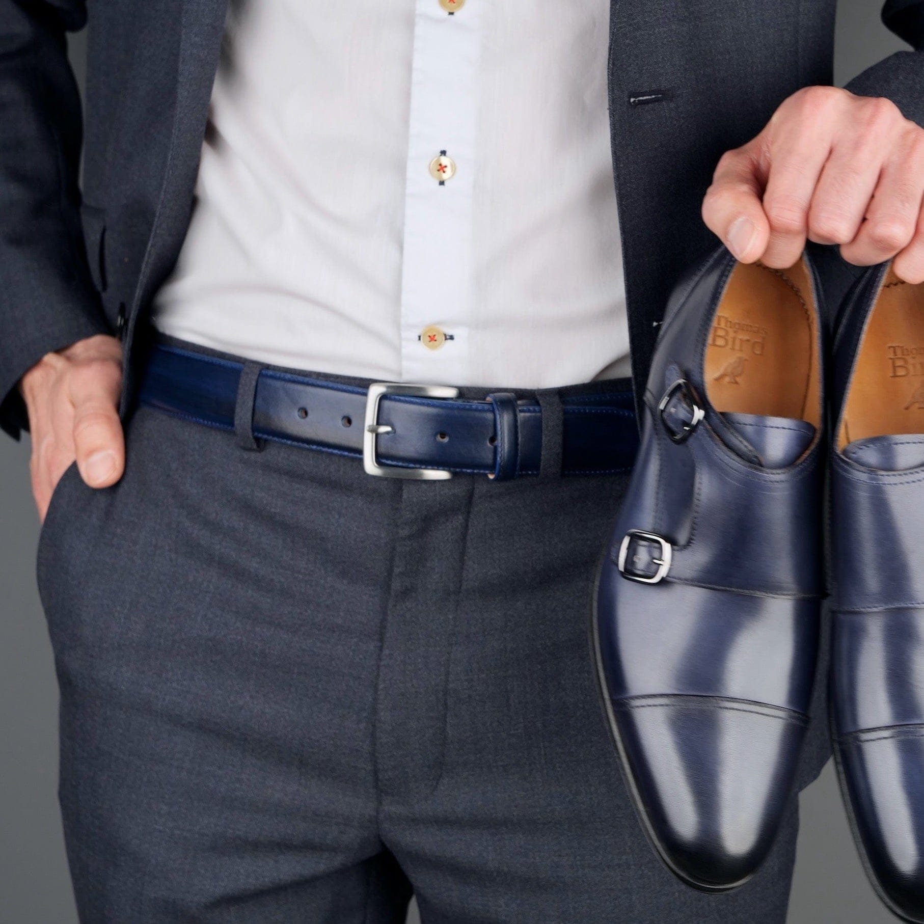 High quality blue leather belt made from full grain Italian leather, dyed and hand finished to create a rich colour.