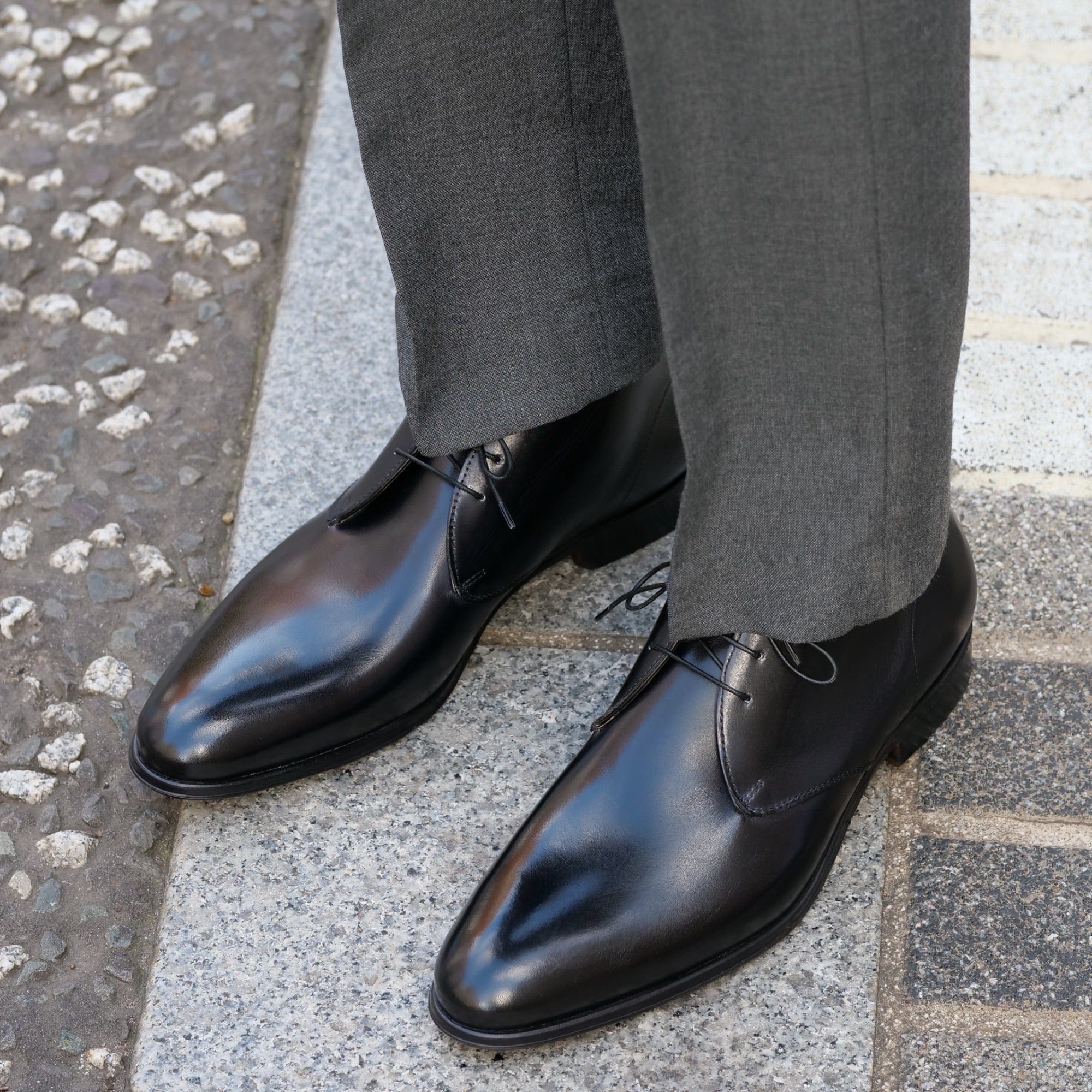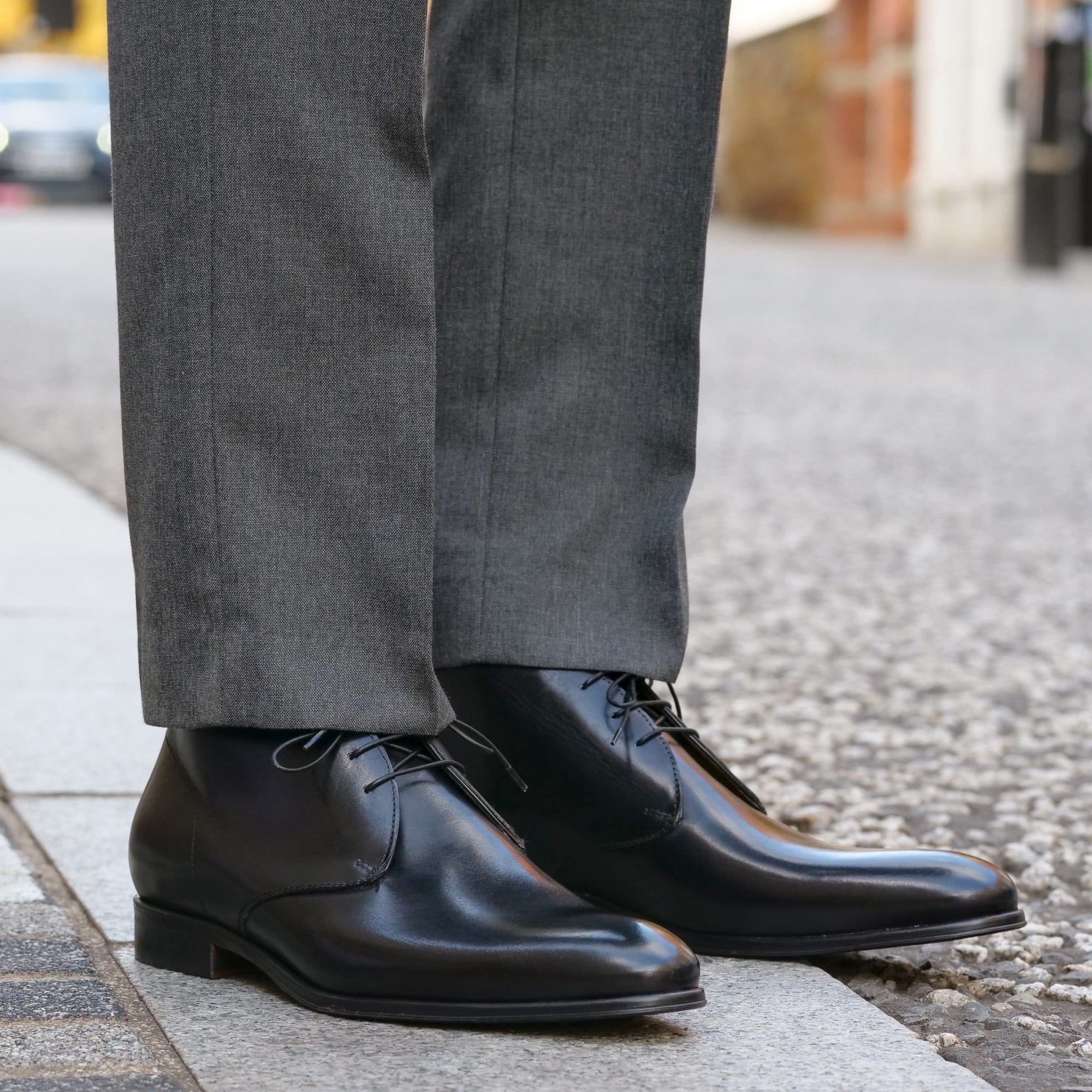 Hamilton updates the classic chukka boot with beautiful sweeping lines and a modern, clean look. Comfortable, versatile and relaxed it can be worn casually or suited up, and in soft black leather, it will complement any outfit perfectly.
