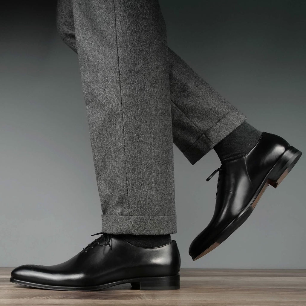 Our Ellington wholecut has a sleek silhouette and slightly chiselled and punched toe. It is formal, subtle and beautiful and in classic black, this is a perfect dress shoe to complement any smart occasion.