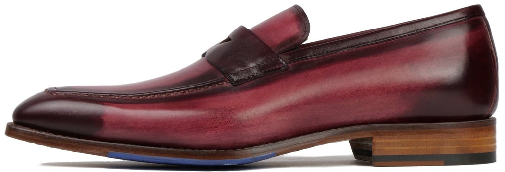 Hampton is a fresh re-design of the traditional penny loafer. Sleek, elegant lines and a chiselled toe are inspired by European/Italian styling. Perfect for both formal and casual wear, the unique oxblood patina adds a splash of colour to neutral outfits.