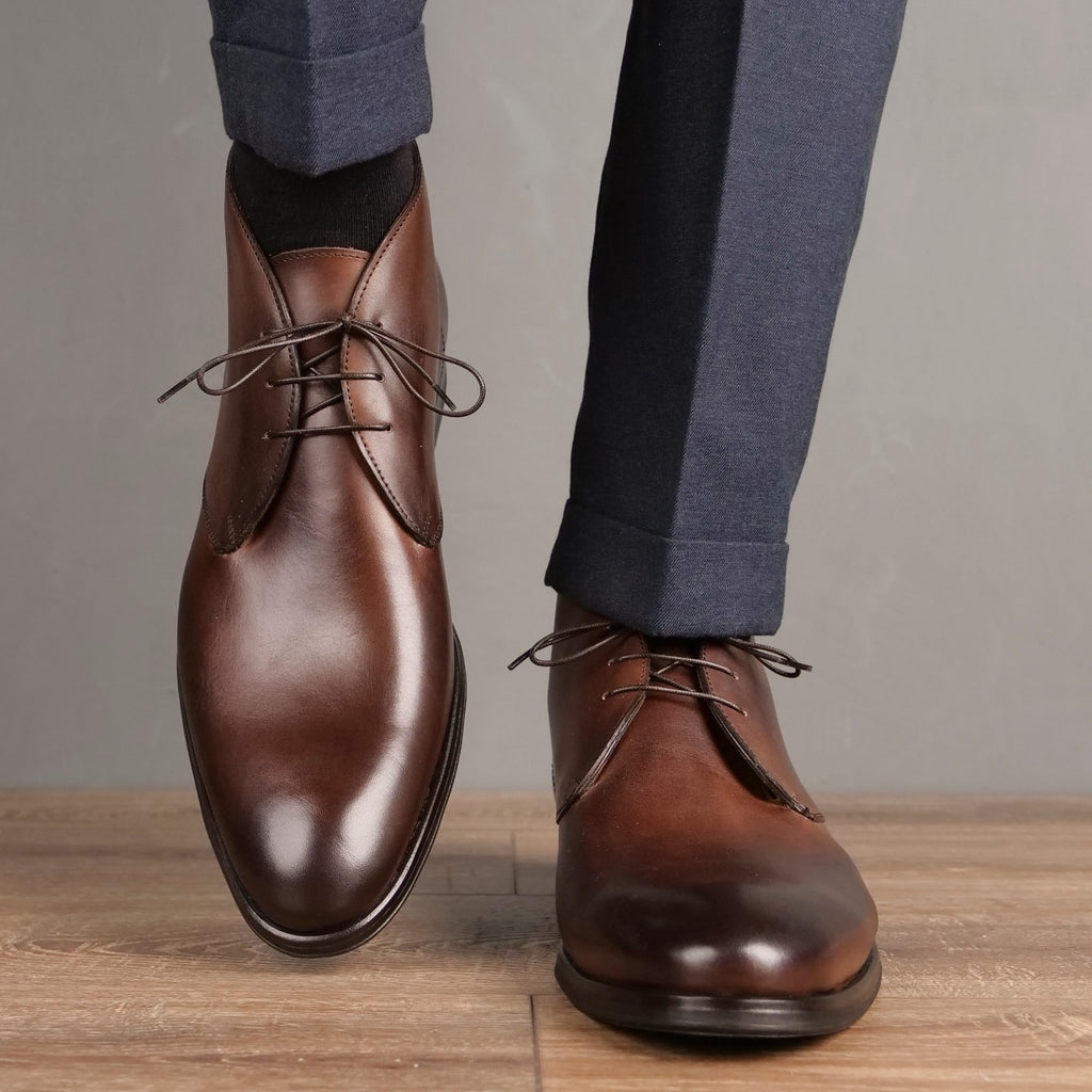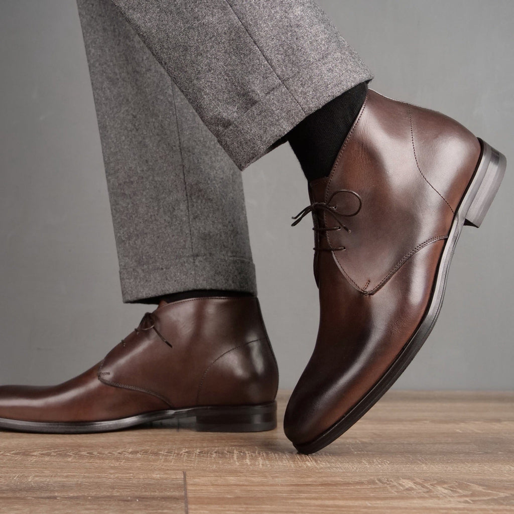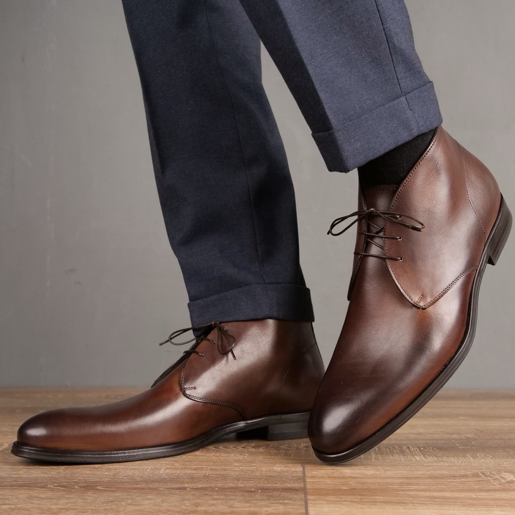 Hamilton updates the classic chukka boot with beautiful sweeping lines and a modern, clean look. Comfortable, versatile and relaxed it can be worn casually or suited up. In this lovely rich brown, with a long lasting Vibram sole, they will add warmth to every outfit.