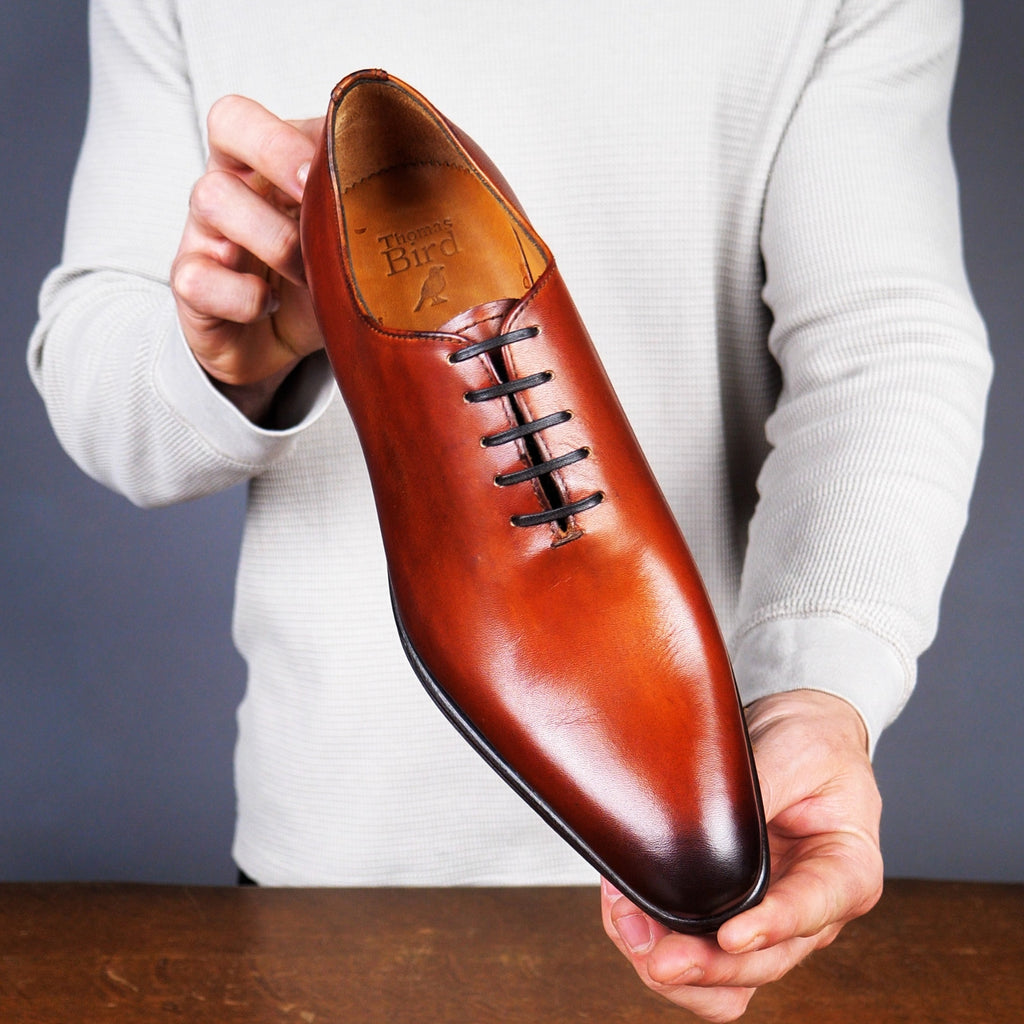 Our Benson wholecut has a sleek silhouette and slightly chiselled toe. Perhaps the ultimate dress shoe for shoe lovers, it is formal, subtle and beautiful. Chestnut is one of the more versatile colours and works with both dark and light suits.