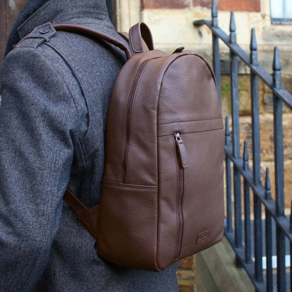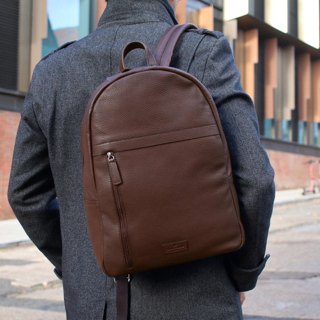 Versatile and contemporary rich brown backpack/rucksack in soft full grain leather.