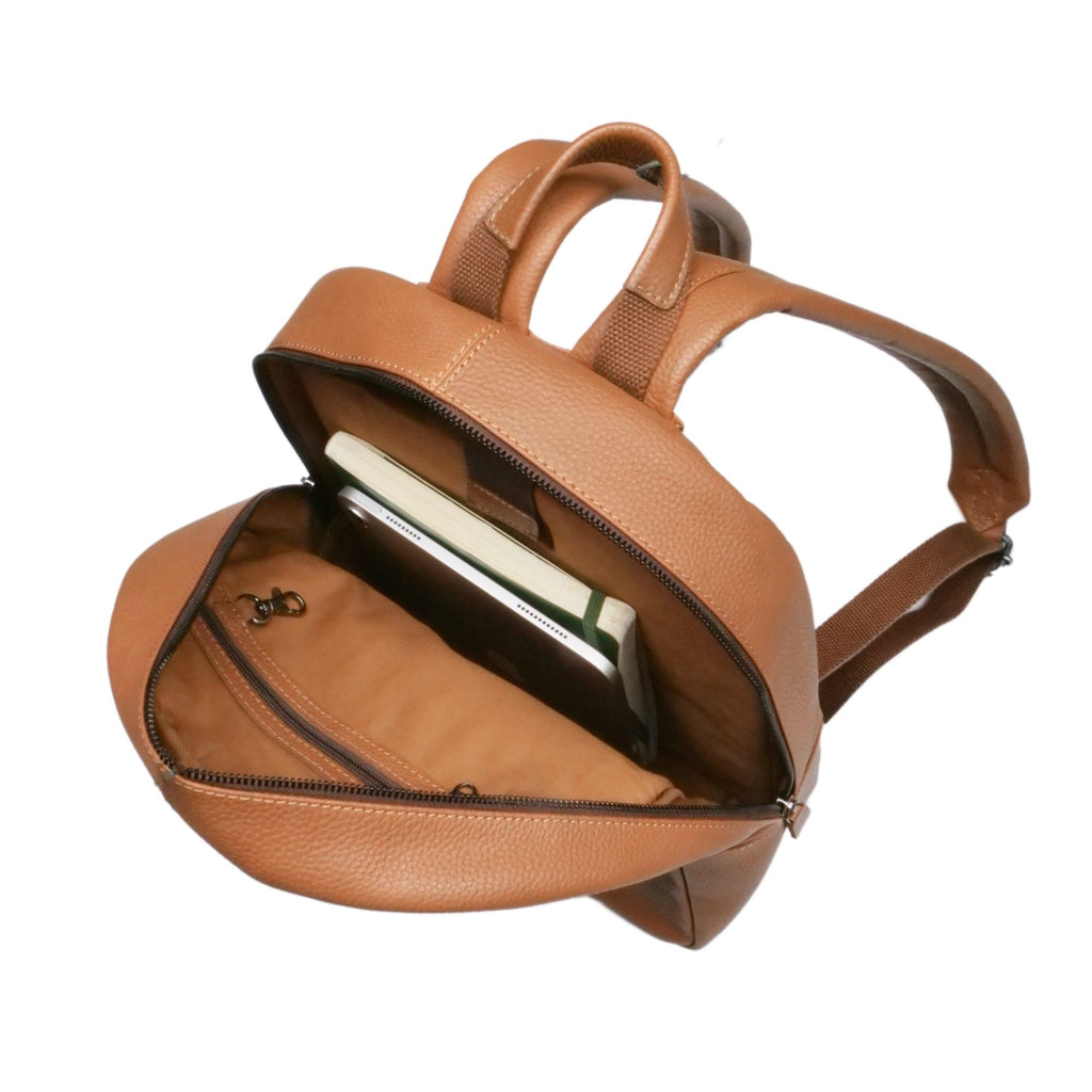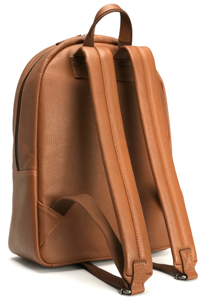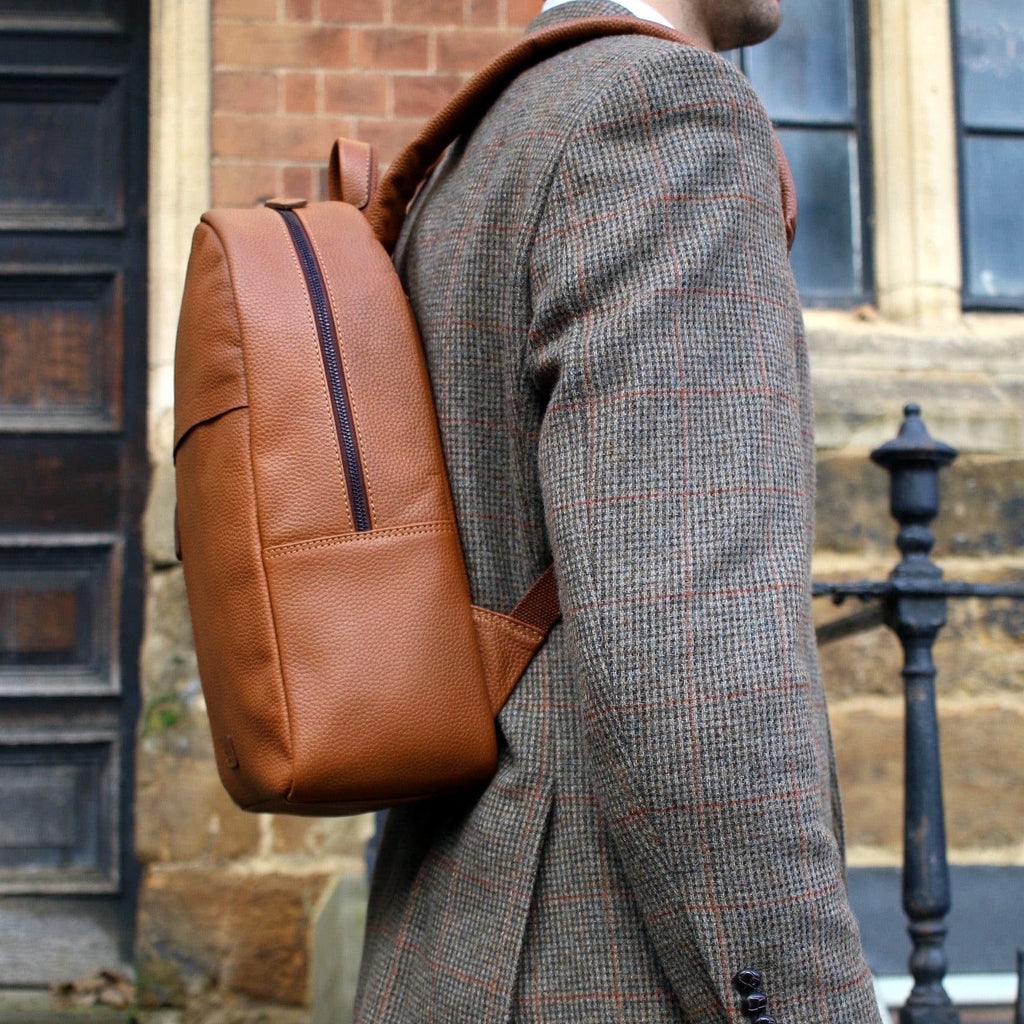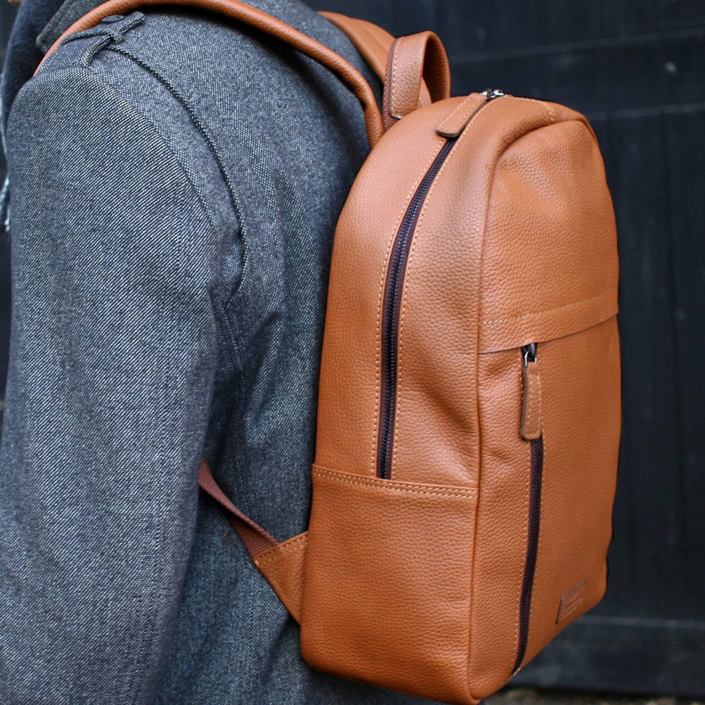 Versatile and contemporary warm tan backpack/rucksack in soft full grain leather.