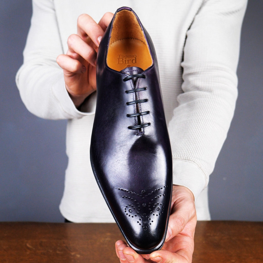 Our Ellington wholecut has a sleek silhouette and slightly chiselled and punched toe. It is formal, subtle and beautiful and will add a discreet pop of colour in this deep aubergine, to make it a perfect choice for any smart occasion.