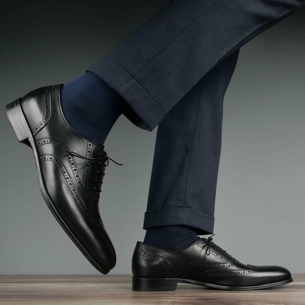 Cambridge is a classic wingtip brogue oxford with elegant lines and a rounded toe. In versatile black this shoe can be worn as a formal option or dressed down for a smart casual look with any colourway.