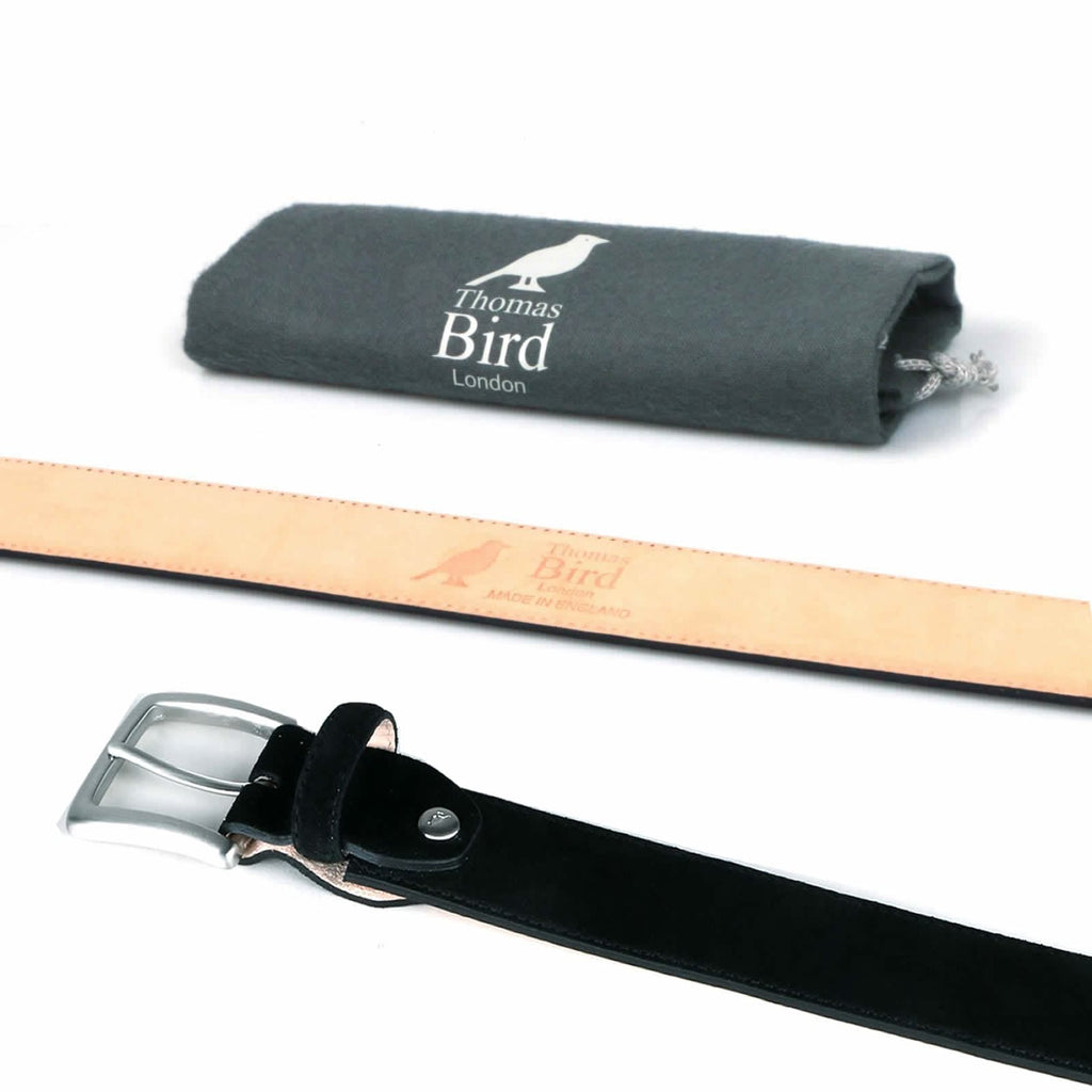 High-quality black suede belt made from premium Italian suede, dyed and hand finished to create a rich colour.