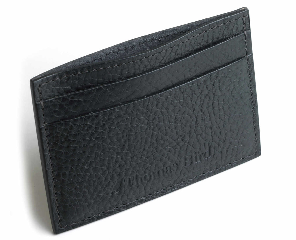 Black card holder. Made from high quality Italian grain leather. Each wallet is hand finished to produce an extra depth of colour.