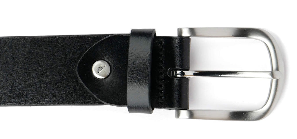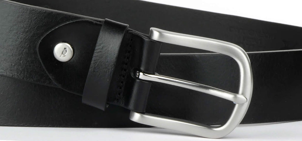 Extra wide, 38mm cut edge belt in premium, full weight, black Italian leather. Made in England, with a curved horseshoe-style brushed nickel buckle. A wider 38mm cut belt gives a relaxed, more casual look compared to our 34mm dress belts.