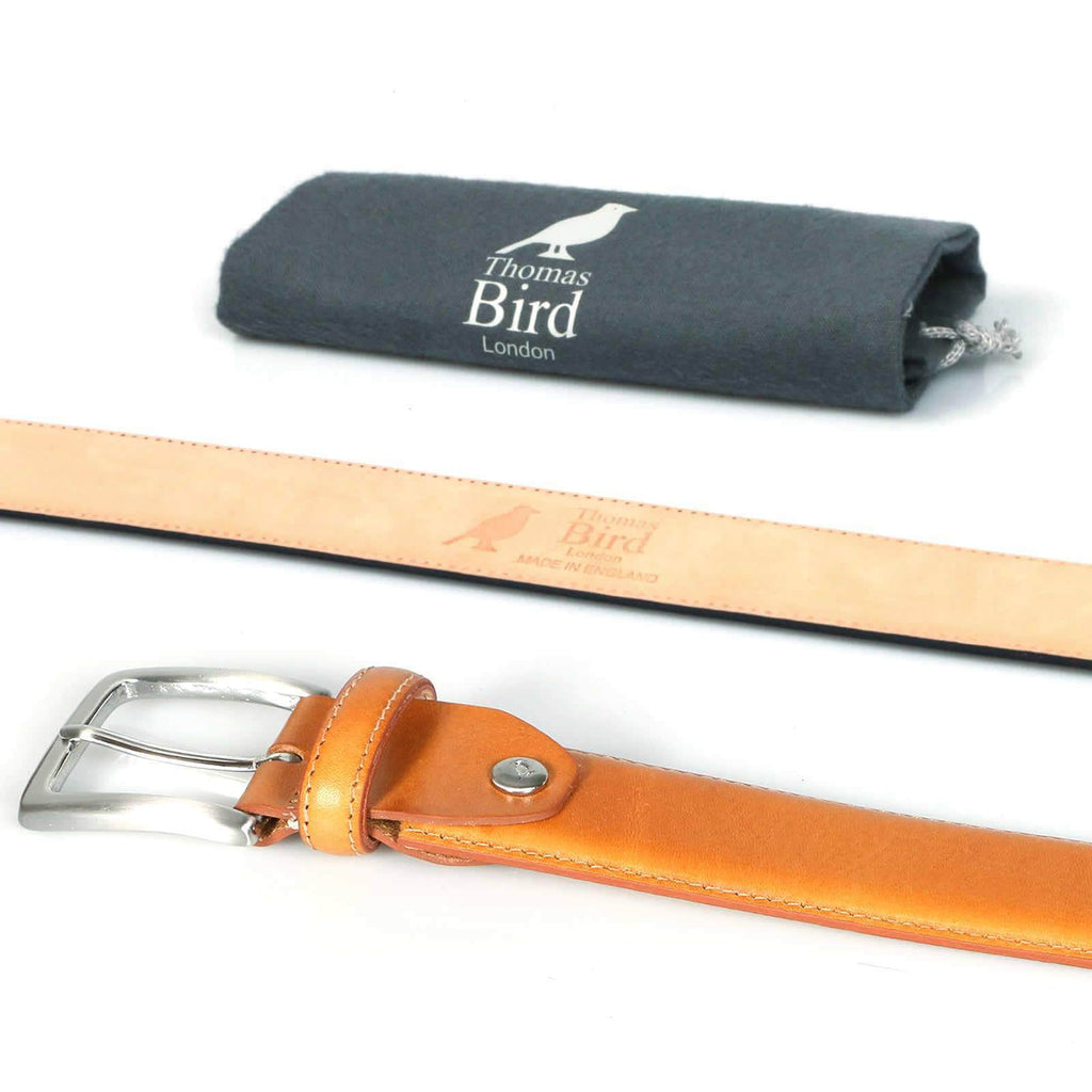 High quality light tan leather belt made from full grain Italian leather, dyed and hand finished to create a rich colour.