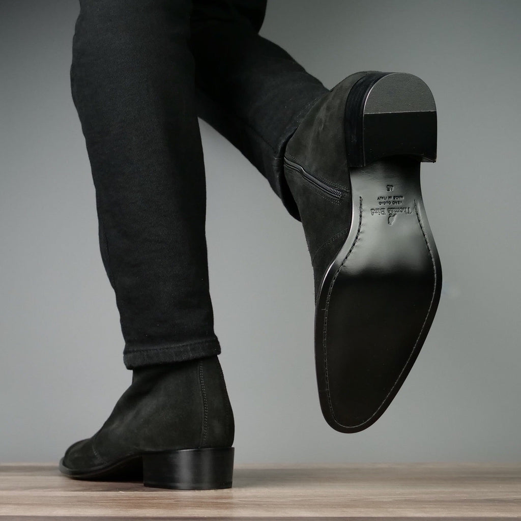 Memphis is a stunning, top-quality zip boot in both looks and attitude. It has a higher 40mm stacked heel and a beautiful silhouette. Comfortable and versatile it can be worn casually with jeans or suited up. In premium black soft suede, this is an elegant and unique boot that will enhance any outfit.