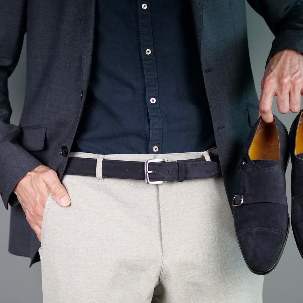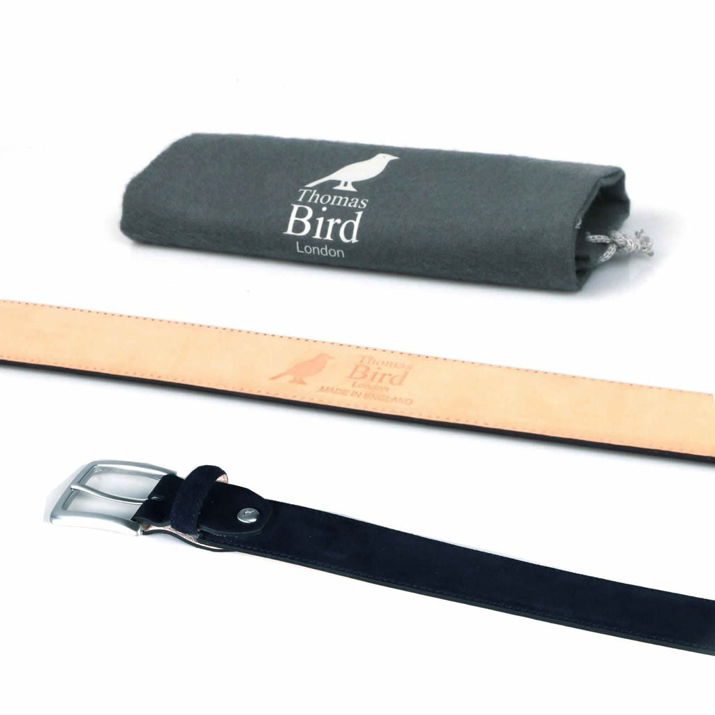 High-quality navy blue suede belt made from premium Italian suede, dyed and hand finished to create a rich colour.